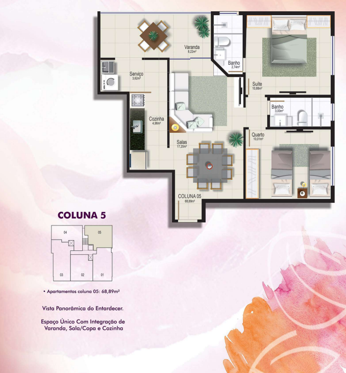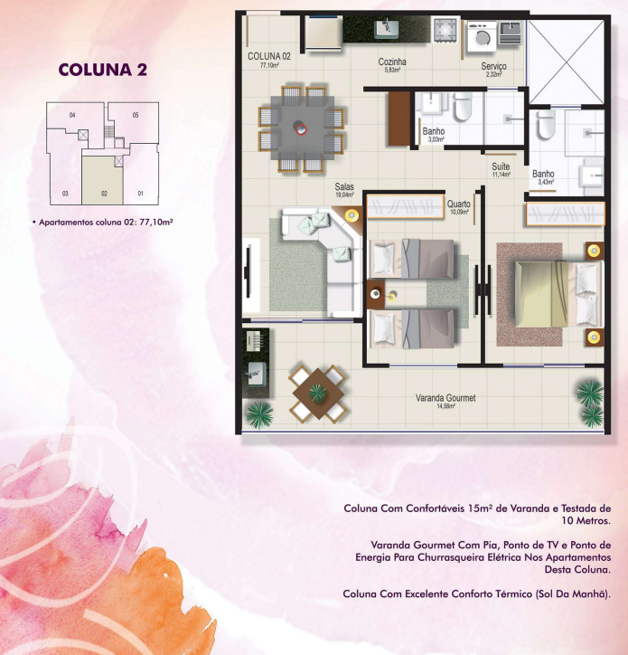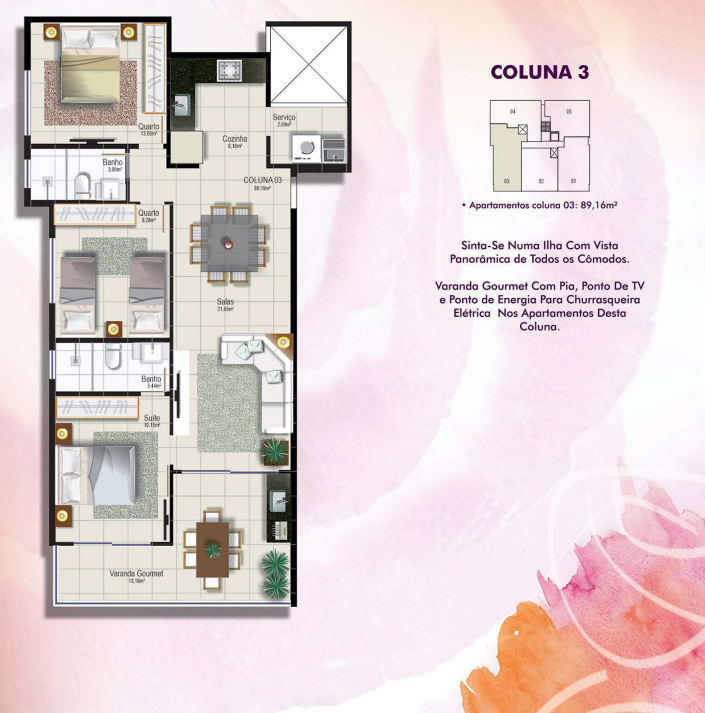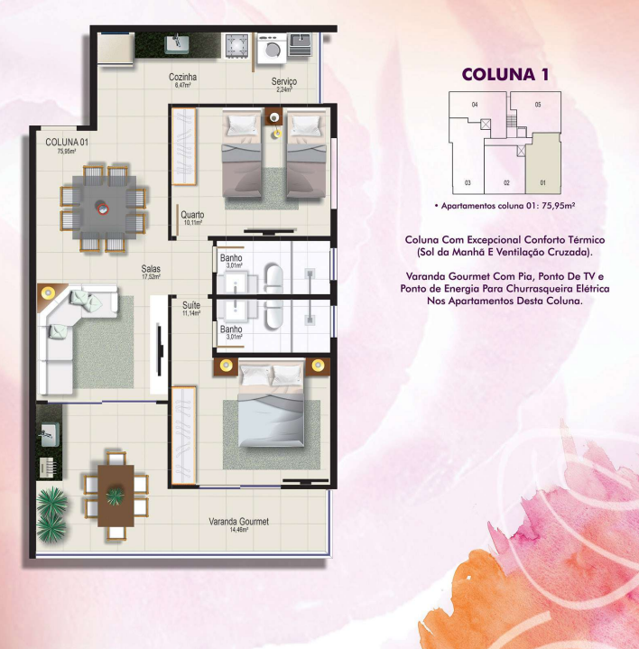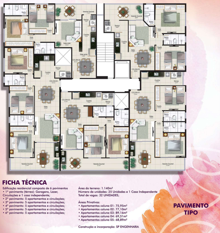• Plantas inteligentes com ótimo aproveitamento dos espaços